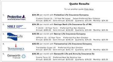 The full version of VAM dB is integrated with NinjaQuoter.com life insurance quote engine. You must be subscribed to their Plus product to use with VAM dB. If you place their quotes on your website, new leads will be sent directly into your VAM dB account as well. NinjaQuoter has term, UL and final expense quotes and can quote table rated products.